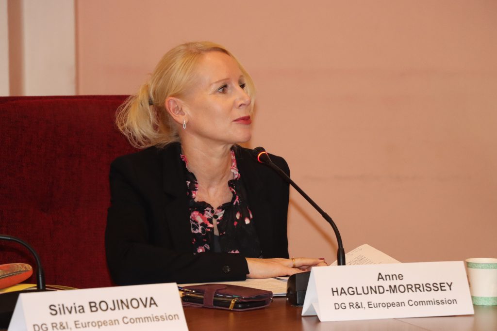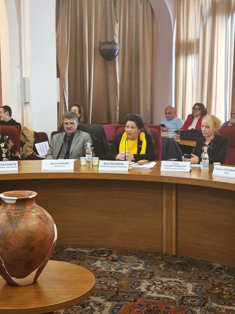 Welcome speeches were delivered by Mr. Sargis HAYOTSYAN, Chairman of the Higher Education and Science Committee of the Republic of Armenia; and Mr. Arthur ISHKANYAN, Academician-Secretary, the National Academy of Sciences of the Republic of Armenia, and Ms. Anne HAGLUND-MORRISSEY, Deputy Head of Unit, Horizon Europe Association, DG R&I, European Commission.